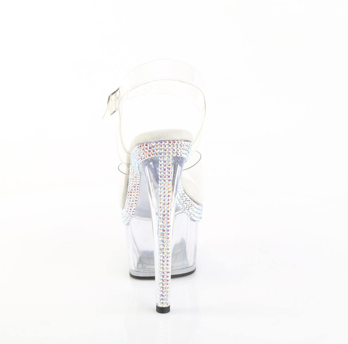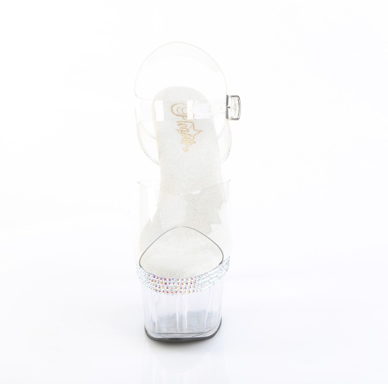 Pleaser Adore-708MLS - Clear in Sexy Heels and Platforms is made for Women and comes in Clear and is made of Patent material. It is marked as AnkleStraps, Platforms, Sandals. The size is Womens 10 and weighs 3.3 lbs.