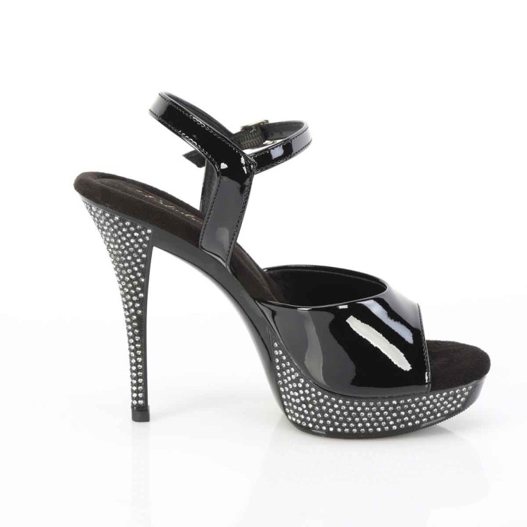 Athena-509 - Black Patent on Rhinestones by Pleaser