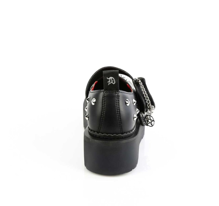 Demonia Rebel-01 - Black Vegan Leather in Shoes and Flats is made for Women and comes in Black and is made of Faux material. It is marked as MaryJanes, Platforms. Sizes are from Womens 6 to 12 and weighs 4.5 lbs.