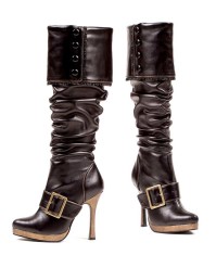 Halloween 426-GRACE - Black PU4 Inch Heel Knee High Boots with Lace, Buttons, and Buckle Décor and Zipper....