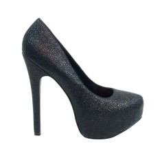 Kissable-11 - Black Glitter Pu SPECIAL5 1/2 Inch Covered Platform Pump...