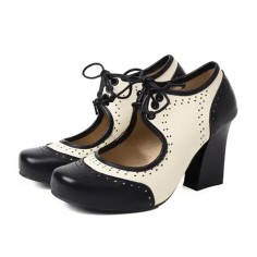 Round Toe Chunky Heels Retro French Maid Lace Up Pumps - BlackShaft Material: Faux Leather