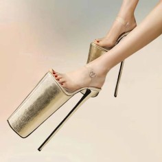Fly High Extreme Stiletto 12-inch Platform Open Toe Sandals - GoldUpper Material: PU