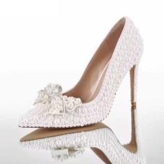 Bridal Slip-On Pearl Crystal Stiletto Pumps - WhiteToe Shape: Pointed to