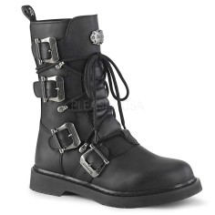 Bolt-265 - Black Vegan Leather 1 1/4 inch Heel, Mid Calf Combat Boot, Side Zip 1 1/4 inch (32mm) Heel Unisex Mi...