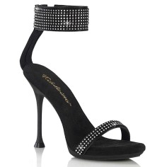 Cupid-408 - Black Faux Leather Rhinestones4 1/2 inch Heel, 2/5 inch Platform Ankle Strap Sandal With Rs
