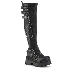 Wrath-310 - Black Vegan Leather3 1/4 inch Chunky Heel, 2 inch Square Toe Platform Thigh Boot, Inside Zip