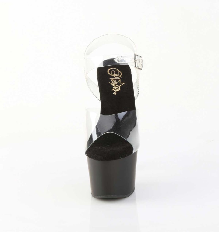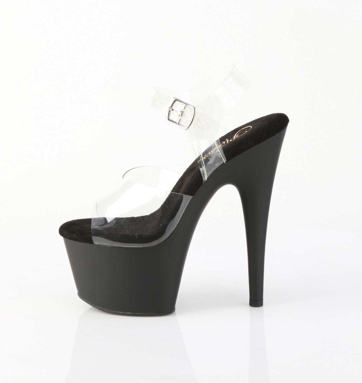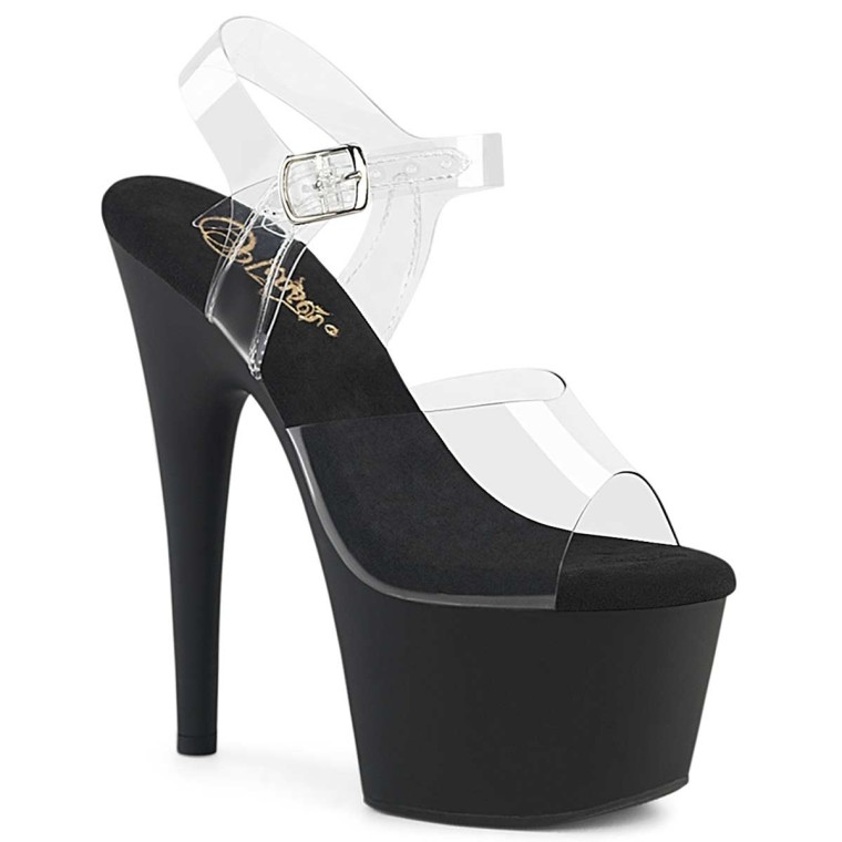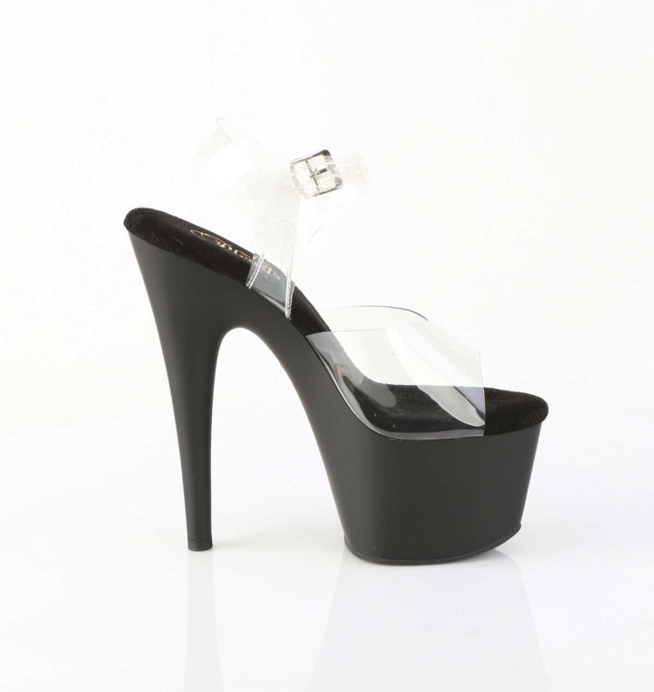 Pleaser Adore-708 - Clear Black Matte in Sexy Heels and Platforms is made for Women and comes in Clear, Black and is made of Clr/Blk Matte material. It is marked as AnkleStraps, Platforms, Sandals. Sizes are from Womens 5 to 14 and the