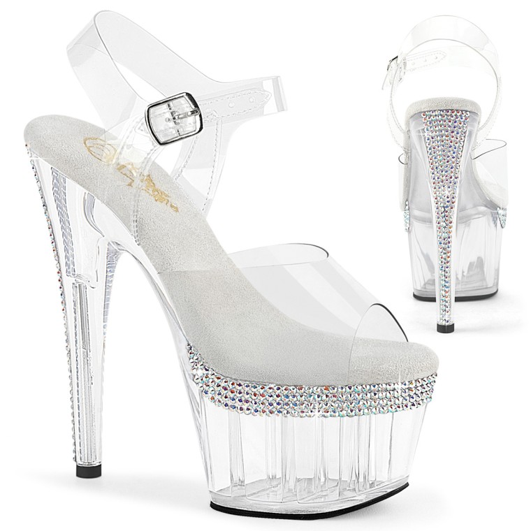 Adore-708PHRS - Clear on White with Rhinestones by Pleaser
