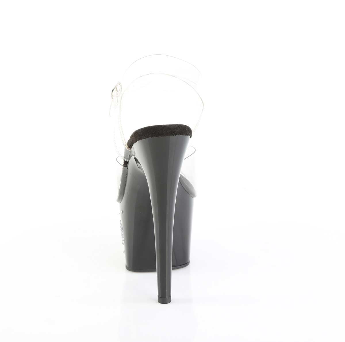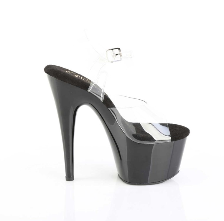 Pleaser Adore-708TIP-02 - Clear Black Silver - Tip Me in Sexy Heels and Platforms is made for Women and comes in Clear, Black, Silver and is made of Patent material. It is marked as AnkleStraps, Platforms, Sandals. Sizes are from Womens 5 to 10 and weighs 3 lbs.