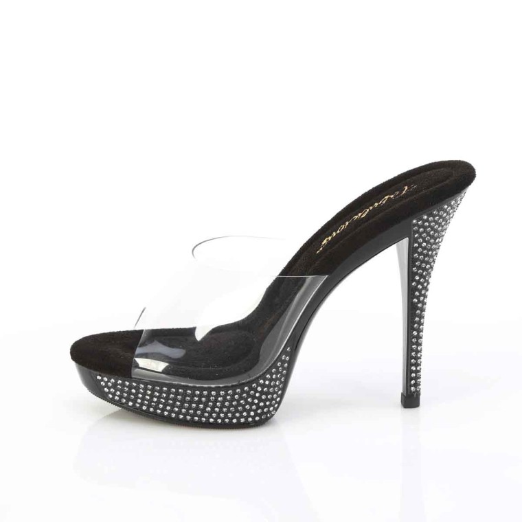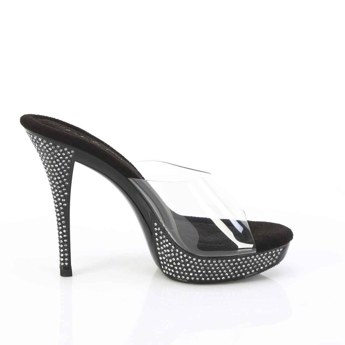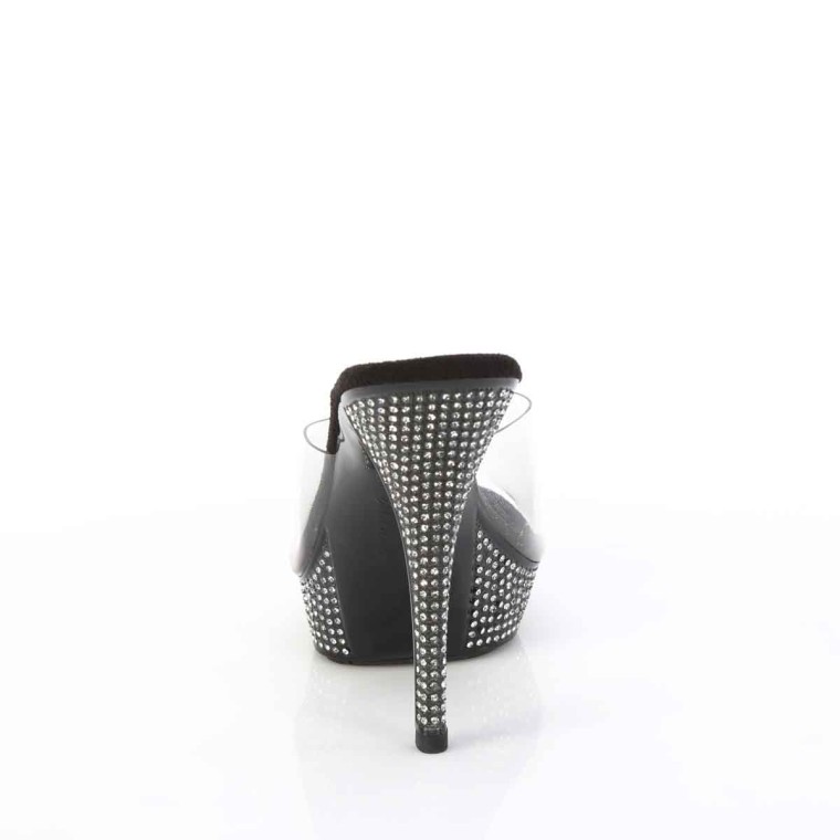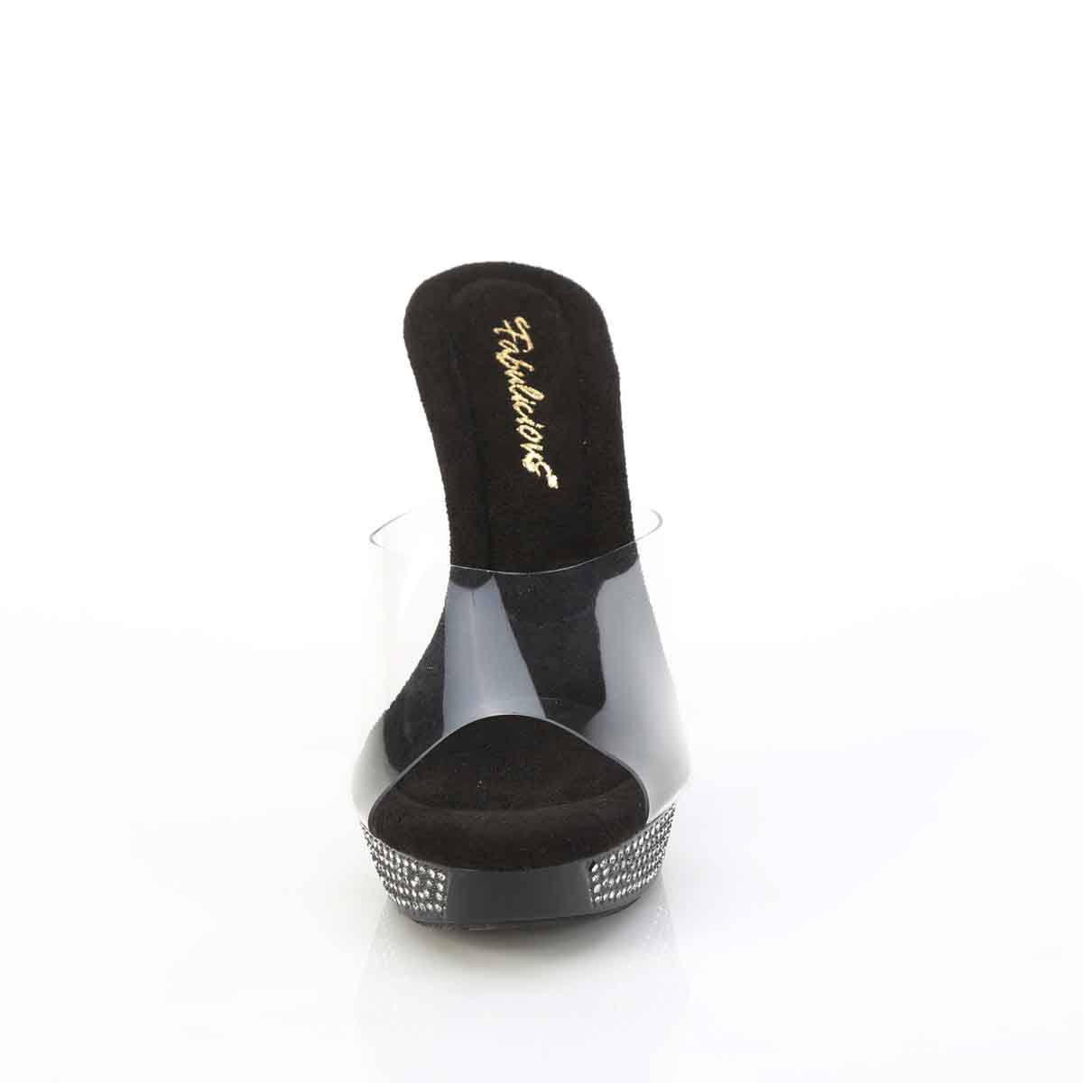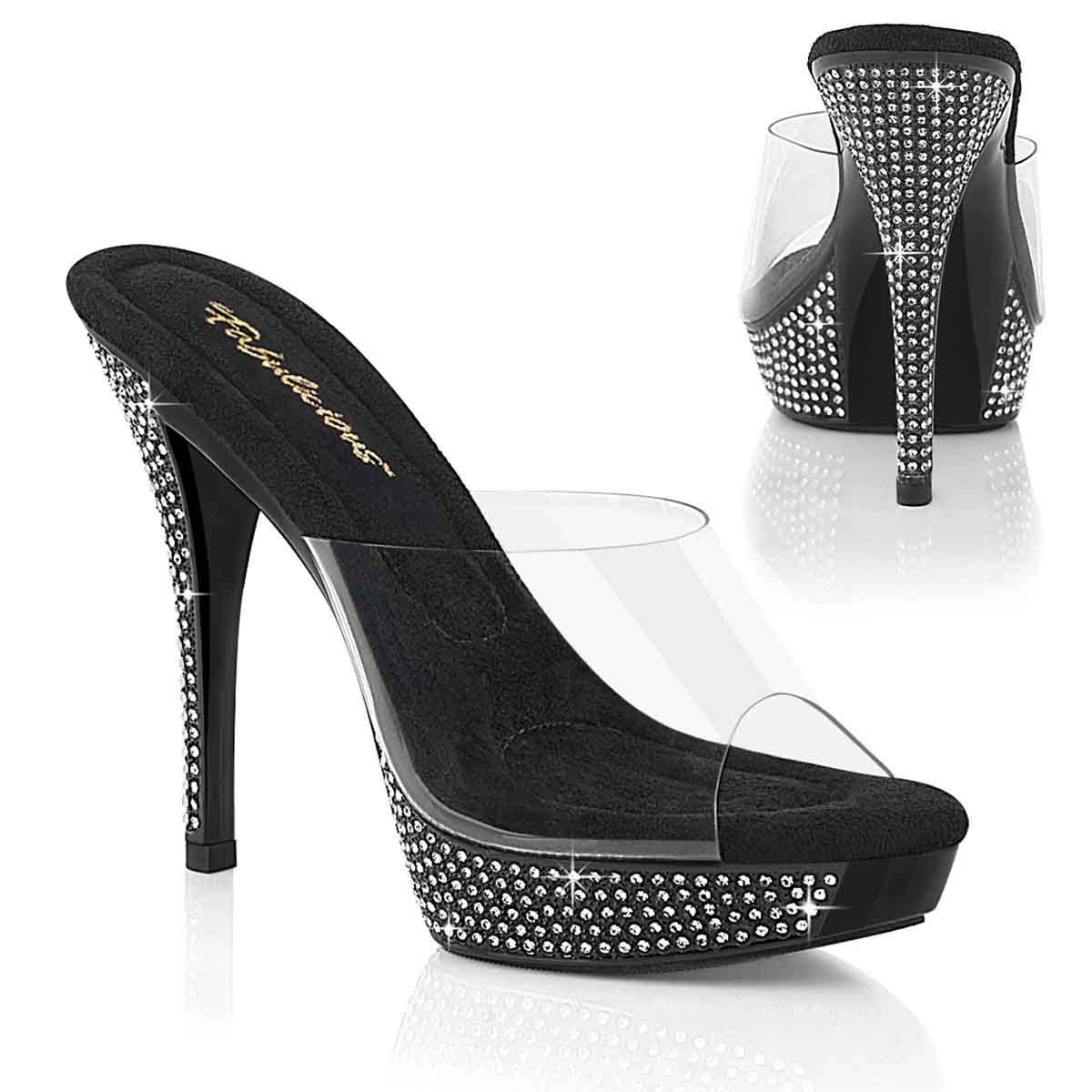 Fabulicious Athena-501 - Clear Black on Rhinestones in Sexy Heels and Platforms is made for Women and comes in Clear, Black and is made of Patent Rhinestones material. It is marked as Platforms, Slides. The size is Womens 10 and weighs 2.3 lbs.