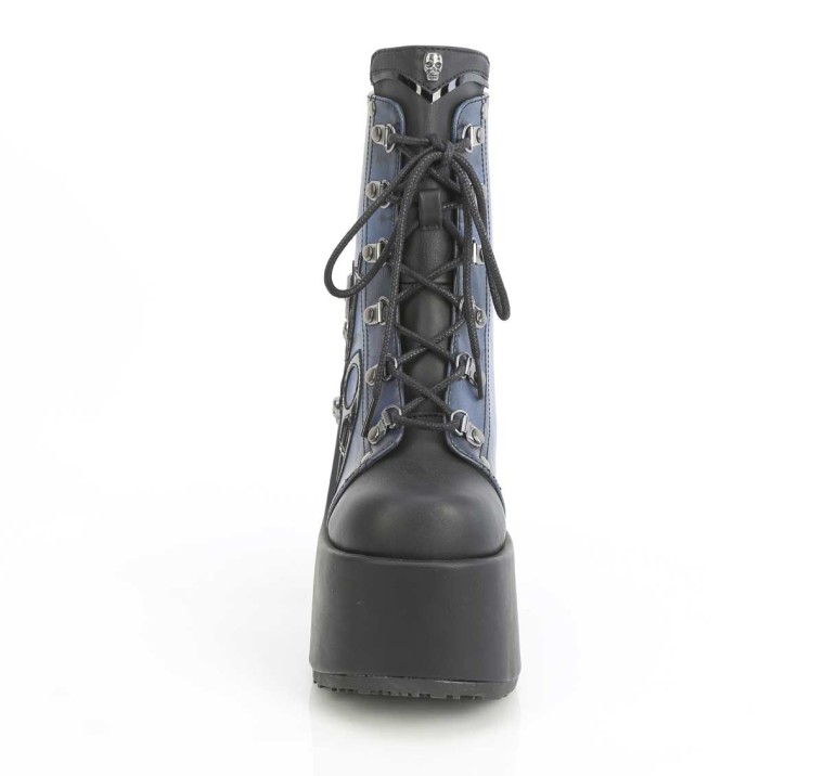 Demonia Camel-203-PT - Black Vegan Leather in Sexy Boots is made for Women and comes in Black and is made of Faux material. It is marked as AnkleHighs, Platforms. The size is Womens 10 and weighs 3.9 lbs.