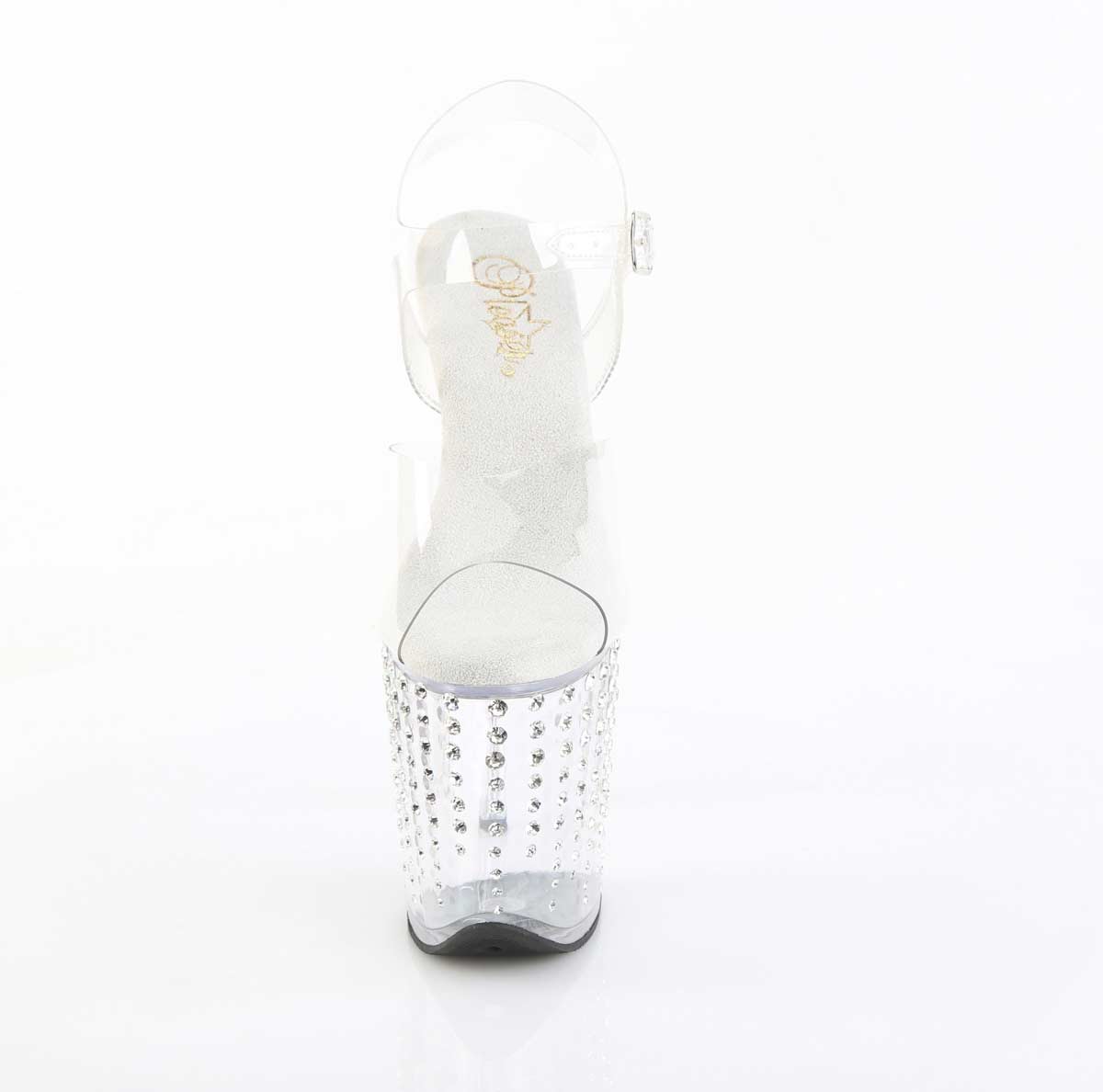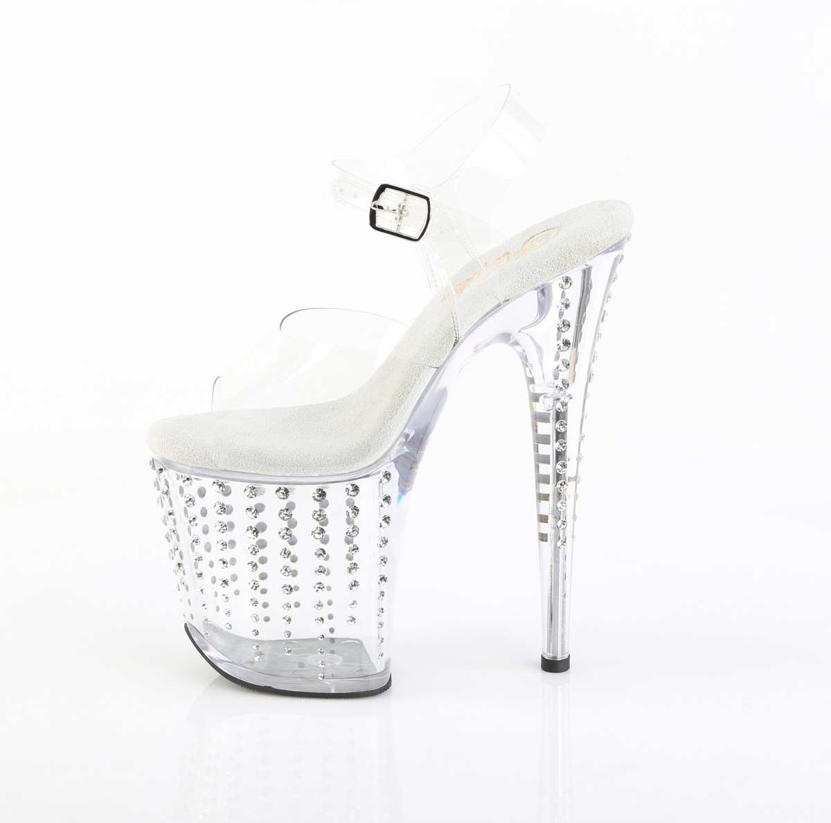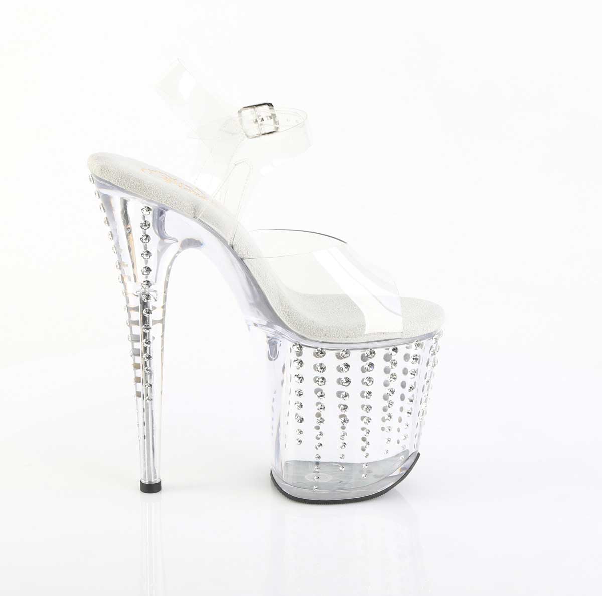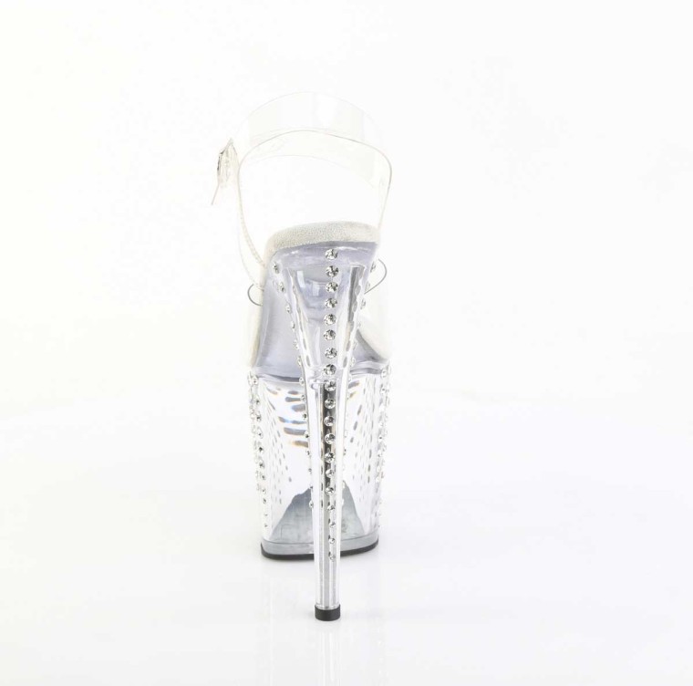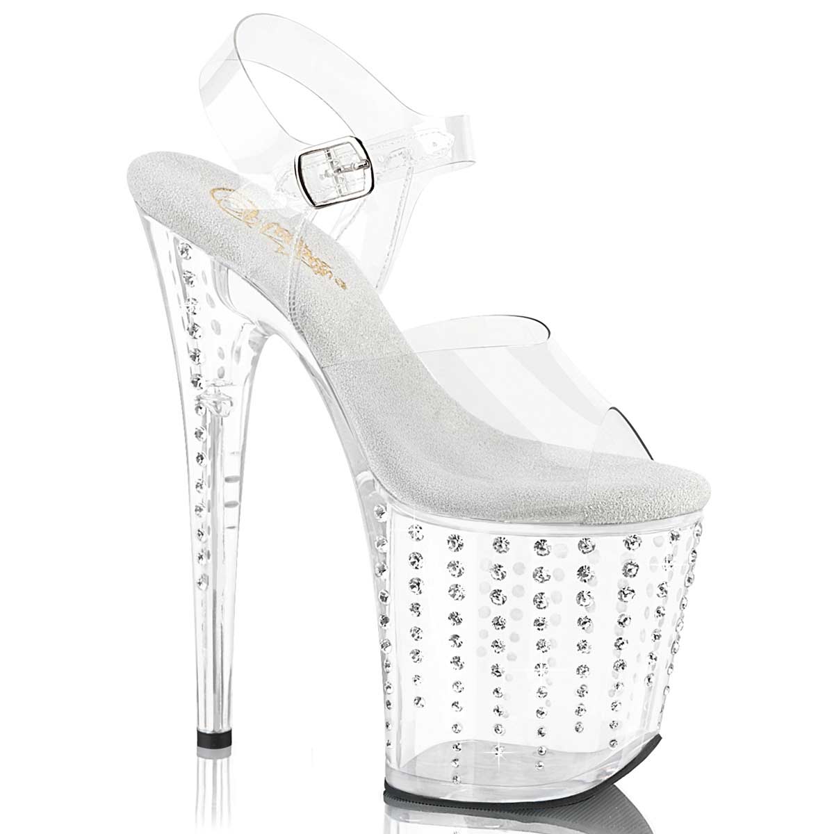 Pleaser Flamingo-808TDRS - Clear Silver with Rhinetones in Sexy Heels and Platforms is made for Women and comes in Clear, Silver and is made of Patent Rhinetones material. It is marked as AnkleStraps, Platforms, Sandals. Sizes are from Womens 5 to 10 and weighs 3.9 lbs.