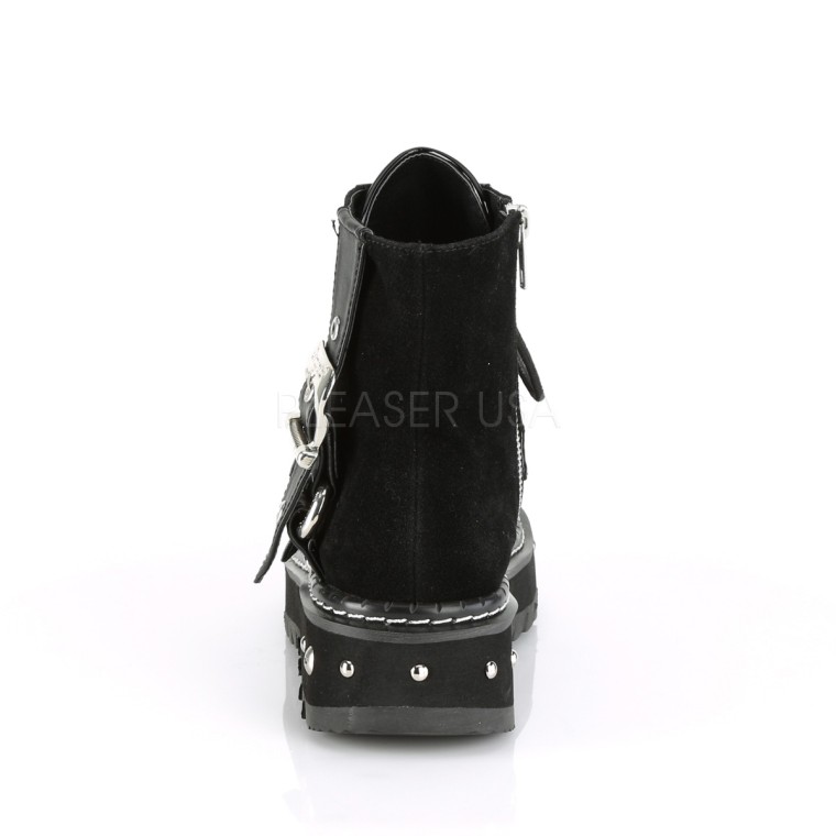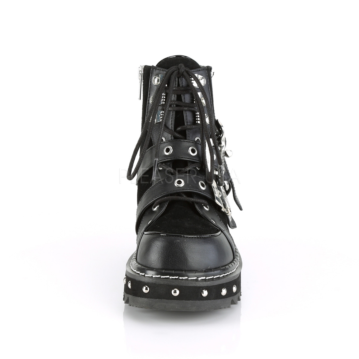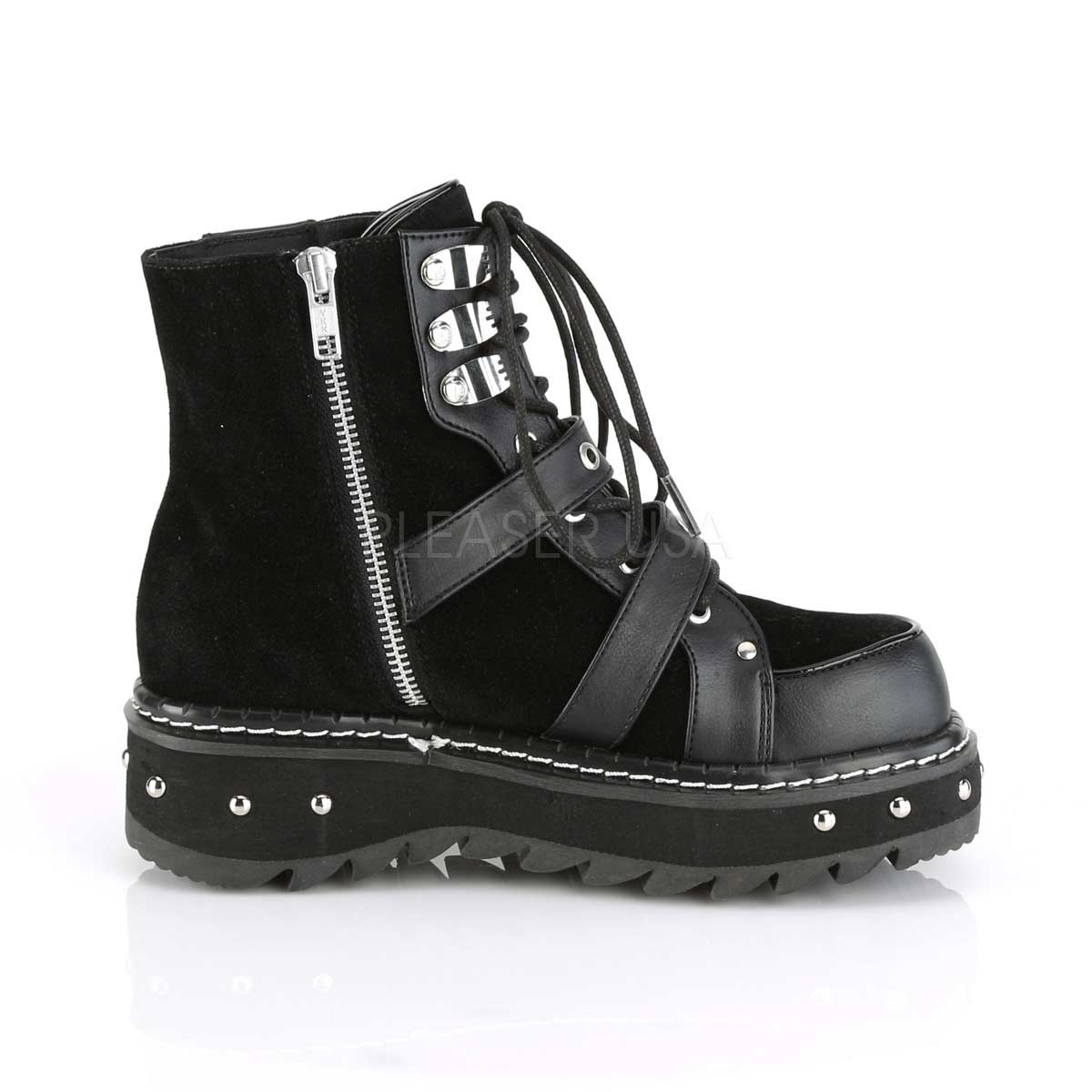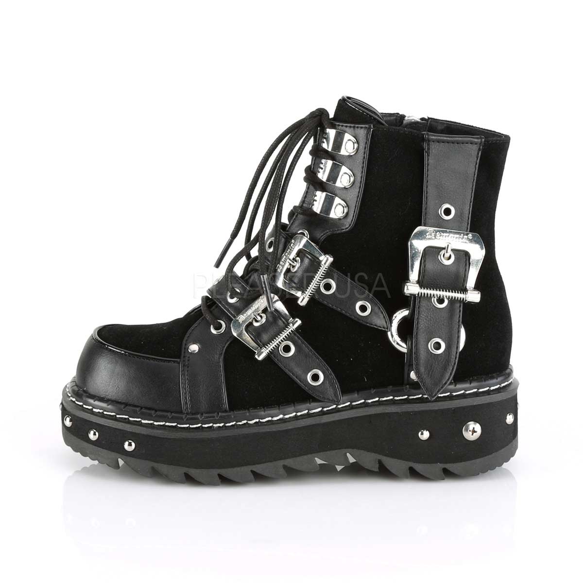 Demonia Lilith-278 - Black Vegan Leather Suede in Sexy Boots is made for Women and comes in Black and is made of Faux Suede material. It is marked as AnkleHighs, Platforms. The size is Womens 7 and weighs 3.9 lbs.