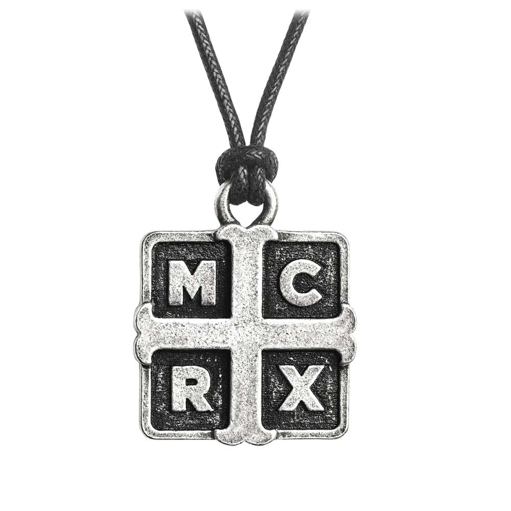 MCRX cross logo based-on the artwork of the, tenth anniversary, reissue of My Chemical Romances 2006 album The Black Parade.A pendant made with fine English pewter on 30 black waxed cord.