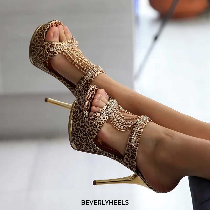 Lib Peep Toe Rhinestones Leopard Pattern Stiletto Heels Platforms Sandals - Black in Sexy Heels and Platforms is made for Women and comes in Black and is made of Silk material. It is marked as Platforms, Sandals, Stilettos. Sizes are from Womens 3 to 15 and weighs 1 lb.