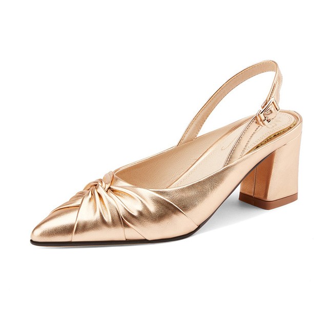Pointed Toe Chunky Heels Slingback Buckle Straps Vintage Sandals Pumps - Gold by Lib